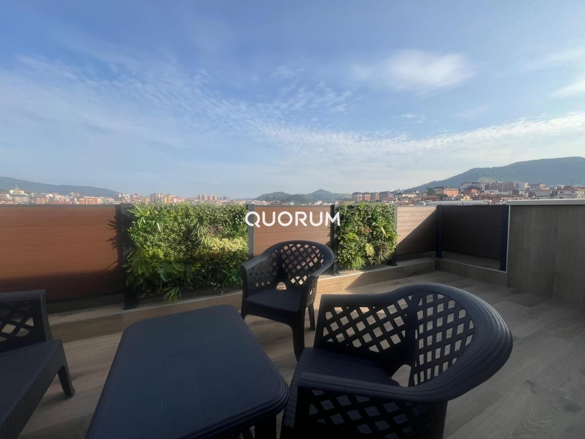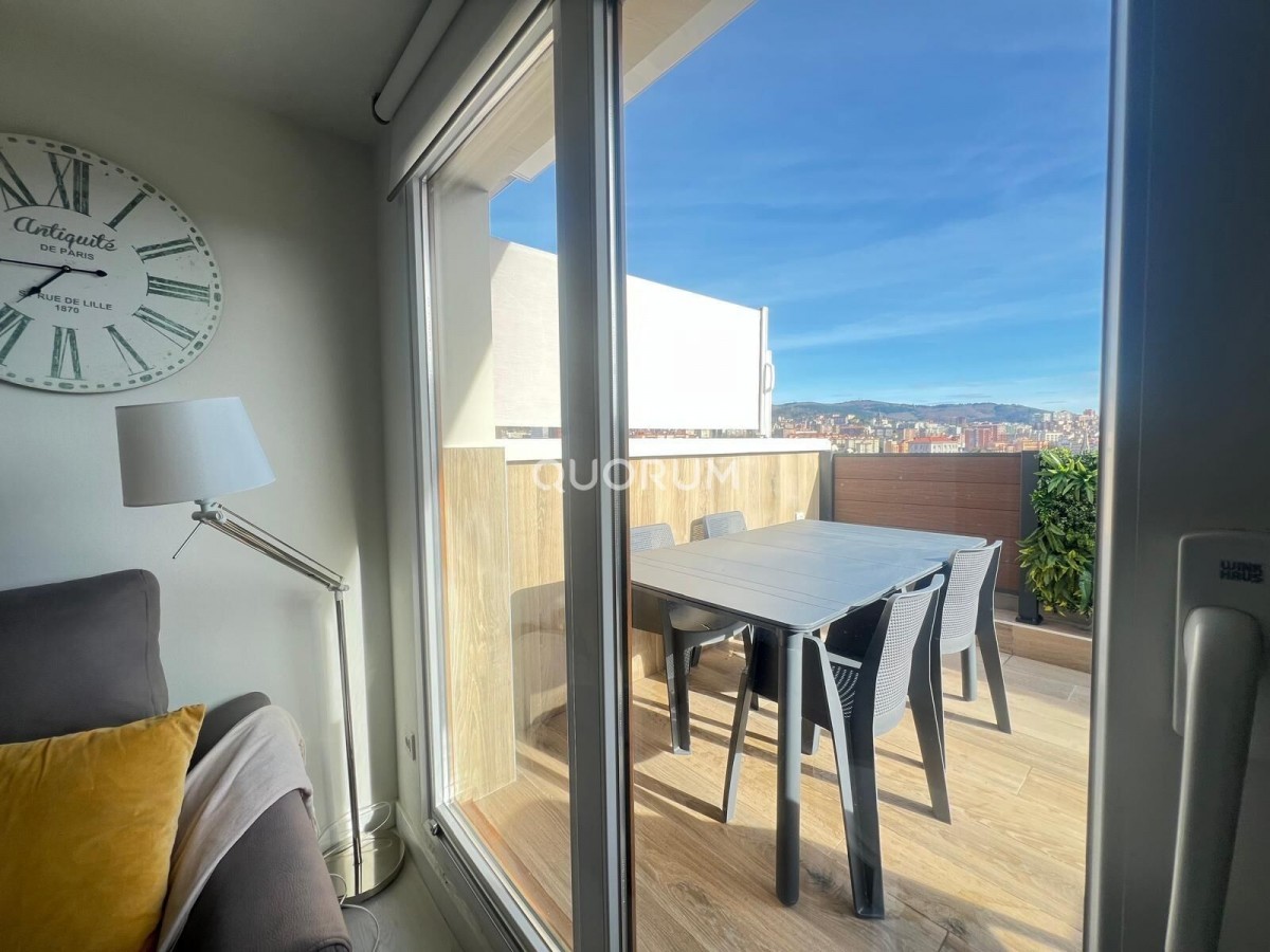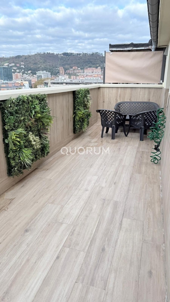 *ALQUILER DE TEMPORADA* INMOBILIARIA QUORUM alquila este precioso ático reformado y a estrenar con dos amplias terrazas con vistas de Bilbao. Situado muy cerca de la estación de Abando, esta vivienda ofrece un oasis en medio de la ciudad, teniendo a mano todo tipo de servicios necesarios para el día a día.~~Destacan sus dos impresionantes terrazas, una de 18m2 y otra de 25m2, a las que se accede desde el dormitorio principal y el salón respectivamente, y que harán las delicias de sus amigos y familiares con unas impresionantes vistas de toda la ciudad.~~El apartamento es ideal para una persona y una pareja y cuenta con 65m2 habitables en su interior. Se distribuye en un salón con cocina americana, un dormitorio principal, un baño y una segunda habitación de invitados, que también puede ser usada también como amplio vestidor o despacho.~~La vivienda se alquila amueblada, la cocina equipada, tiene aislamiento térmico y acústico, y en el precio se incluye el WiFi.~~*SOLO DISPONIBLE PARA ALQUILER DE TEMPORADA*~~Si buscas Agencias Inmobiliarias en Bilbao centro, Quorum es la inmobiliaria que puede ayudarte en la compra, venta o alquiler de tu piso, vivienda o local. 23 Años de trayectoria con 7 Oficinas Inmobiliarias y más de 40 profesionales con gran bagaje en el sector inmobiliario a través de una metodología basada en el rigor, el compromiso y la responsabilidad a través del tratamiento personalizado y con la asesoría de un departamento jurídico propio. Siempre con la sensibilidad de que un inmueble puede llegar a ser un hogar, una inversión o la puesta en marcha de un gran proyecto; el objetivo es acompañar a nuestros clientes de principio a fin para satisfacer expectativas y alimentar ilusiones.~~Garantía, responsabilidad y eficiencia definen los pilares del servicio Quorum. En Grupo Quorum aplicamos una metodología enfocada a lograr resultados óptimos y de beneficio en el menor tiempo posible. En Quorum somos muy conscientes del vínculo emocional asociado a una vivienda o a un proyecto de negocio, de ahí que nuestros agentes y nuestros asesores sepan acompañarle con seriedad y empatía en todo el proceso de compra-venta, facilitando la búsqueda y gestionando desde las labores administrativas, la consecución del certificado energético, home staging, hasta las fotografías/vídeos profesionales o todos los servicios asociados a la gestión inmobiliaria. Un equipo propio experto en marketing, así como un departamento legal velarán por los intereses de cada cliente con el fin de evitar incidencias y simplificar el proceso de compra o de venta de viviendas, chalets, locales o naves industriales en nuestro área de implantación: el Gran Bilbao, así como en zonas vacacionales y proyectos de segunda residencia.~~Quorum es la inmobiliaria líder en Vizcaya. Localiza nuestra agencia inmobiliaria en www.inmobiliariaquorum.com~~