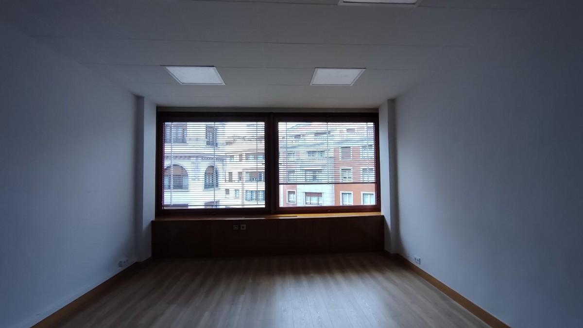 Quorum Bilbao presenta una oficina diáfana de 50 metros cuadrados con un gran ventanal con unas vistas privilegiadas a la confluencia de las calles Iparraguirre y Ercilla.~~Se encuentra situada en un edificio de oficinas, con conserje y tres ascensores, así como calefacción central. Gastos de comunidad no incluidos en la renta.~~Aseos comunitarios en la misma planta.~~Ubicación excelente, a un minuto de la plaza Moyua y el metro, en pleno centro de Bilbao. Junto a las calles Rodriguez Arias y Ercilla, los dos núcleos de comercio de alto standing de la villa, y rodeados de los principales edificios residenciales.~