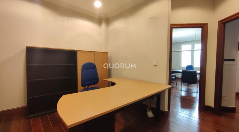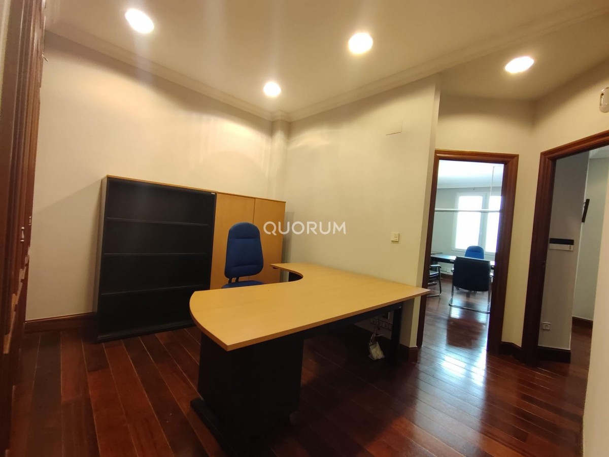 Quorum Bilbao presenta una oficina en alquiler muy bien distribuida, junto a los Jardines de Albia.~~Se trata de un inmueble de 135 metros cuadrados construidos, distribuido en zona de recepción, 5 despachos (el principal con doble mirador exterior), aseo y zona de espera.~~Ubicado en un edifico clásico, junto a la iglesia de San Vicente y al edificio Albia. Cuenta con techos altos, alarma de seguridad, aire acondicionado en el despacho exterior y calefacción por gas natural individual.~~Está ubicada en el epicentro de negocios de Bilbao. A menos de un minuto del Palacio de Justicia y de la torre BAT, y a tres de la estación de Abando, que reúne servicios de tren de larga distancia (en el futuro AVE), autobús, metro y tranvía.~~Si estás buscando una inmobiliaria en Bilbao para comprar, vender o alquilar una vivienda, en Grupo Inmobiliario Quorum ponemos a tu disposición más de 25 años de experiencia en el mercado inmobiliario de Bizkaia y un equipo de más de 50 profesionales especializados en el Gran Bilbao.~Nuestra oficina inmobiliaria en Bilbao (Abando) forma parte de una red consolidada de 8 oficinas en Bilbao y Bizkaia, lo que nos permite ofrecer un profundo conocimiento del mercado local y trabajar activamente en todos los distritos de Bilbao, como Abando, Indautxu, Deusto, Miribilla, Rekalde, Basurto-Zorroza.~En Quorum Grupo Inmobiliario ofrecemos un servicio integral para vender, comprar o alquilar pisos, casas, oficinas, locales comerciales y pabellones industriales en Bilbao y alrededores. Nuestro equipo acompaña a cada cliente durante todo el proceso con servicios profesionales como valoración de viviendas, estrategias de marketing inmobiliario, fotografía y vídeo profesional, home staging, gestión del certificado energético y asesoramiento personalizado.~Somos además la única inmobiliaria en la zona con departamento jurídico propio y departamento de marketing interno, lo que garantiza seguridad legal y estrategias de comercialización eficaces para cada inmueble.~Grupo Inmobiliario Quorum cuenta con el sello de calidad de Fotocasa, un reconocimiento a la excelencia en el servicio inmobiliario y a la satisfacción de nuestros clientes. Además, apostamos por la innovación: fuimos pioneros en el uso de CRM inmobiliario y actualmente integramos inteligencia artificial en nuestros procesos de venta, mejorando la visibilidad y la comercialización de cada propiedad.~Con más de 4.600 reseñas en Google y una valoración media de 4,9, somos una de las inmobiliarias mejor valoradas en Bilbao y Bizkaia.~Elcano Kalea, 16 – Abando~48008 Bilbao (Bizkaia)~946 51 02 02~Si quieres vender, comprar o alquilar tu vivienda en Bilbao, en Grupo Inmobiliario Quorum te acompañamos con un servicio profesional, seguro y orientado a resultados.~